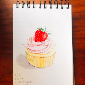 後來老師有開實體課程, 我也報了一堂. 畫出一顆沒有簽字筆描邊的甜點.